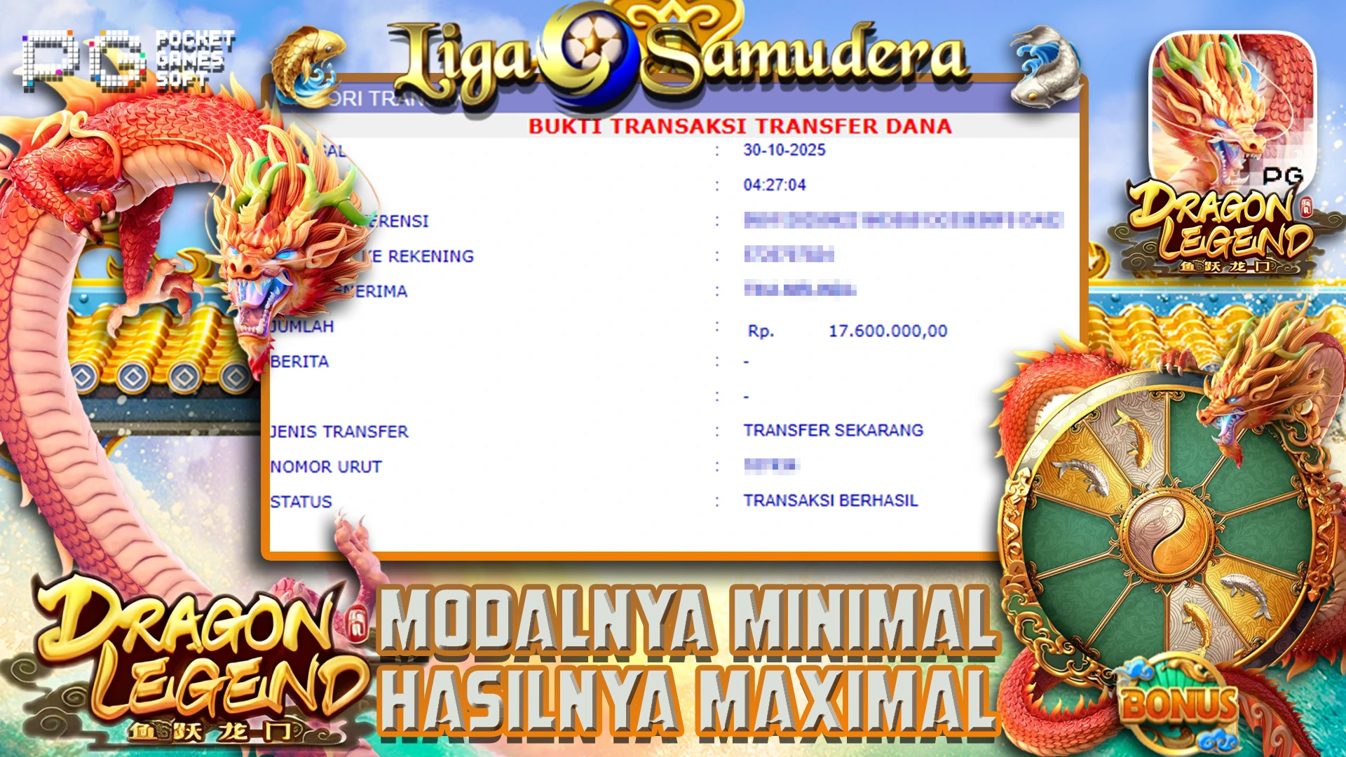BUKTI KEMANANGAN BERMAIN PERMAINAN SLOT PG SOFT ” DRAGON LEGEND “