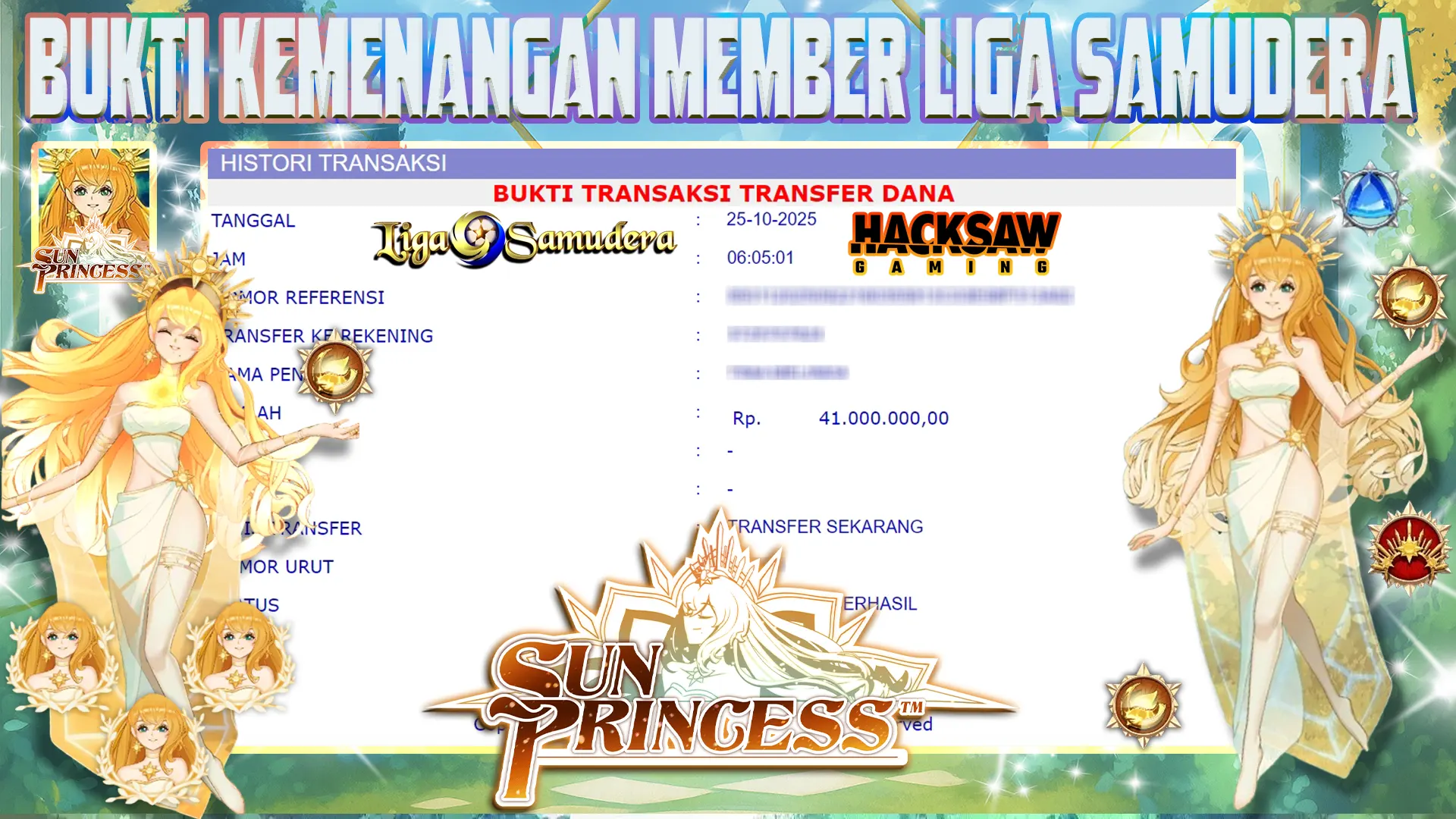 BUKTI KEMENANGAN BERMAIN PERMAINAN SLOT HACKSAW GAMING ” SUN PRINCESS “