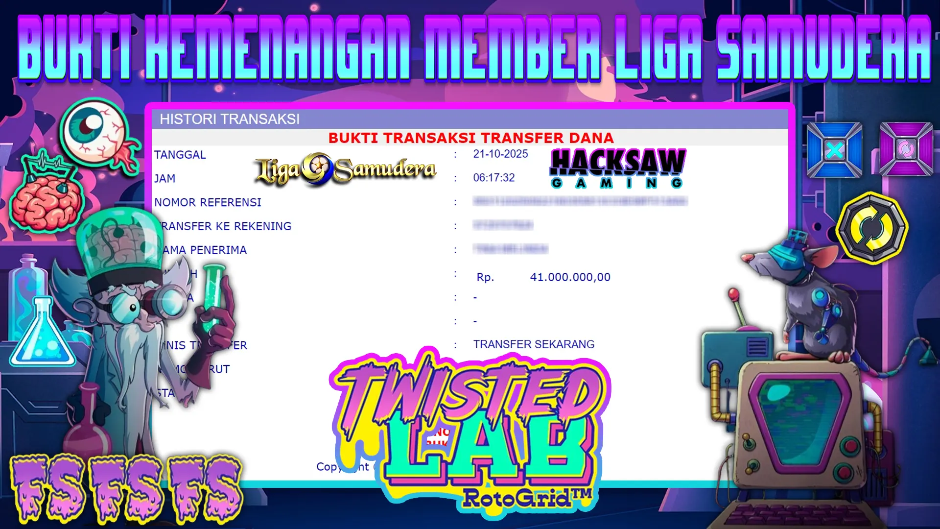 BUKTI KEMENANGAN BERMAIN PERMAINAN SLOT HACKSAW GAMING ” TWISTED LAB “