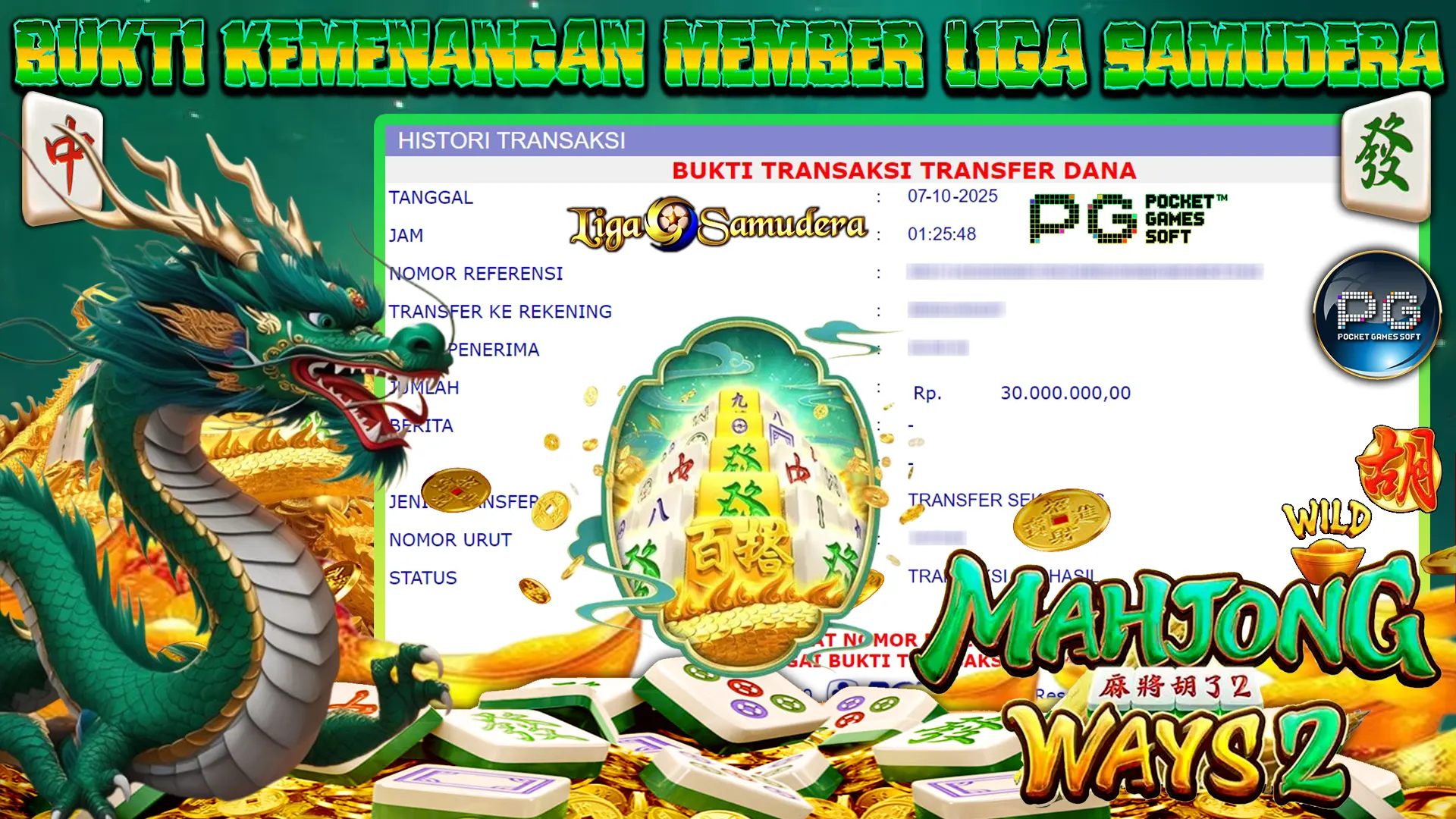 BUKTI KEMENANGAN BERMAIN PERMAINAN SLOT PG SOFT ” MAHJONG WAYS 2 “