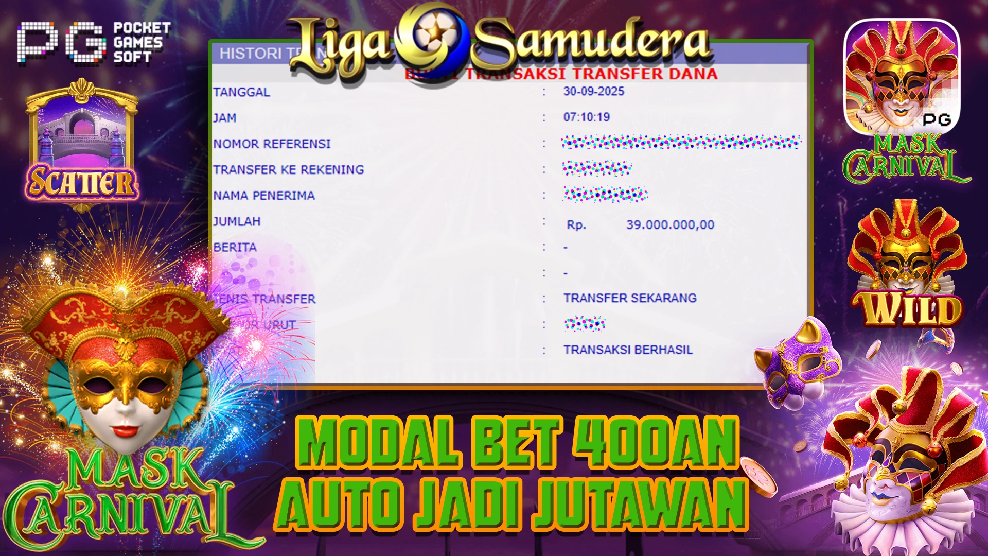 BUKTI KEMENANGAN BERMAIN PERMAINAN SLOT PG SOFT ” MASK CARNIVAL “
