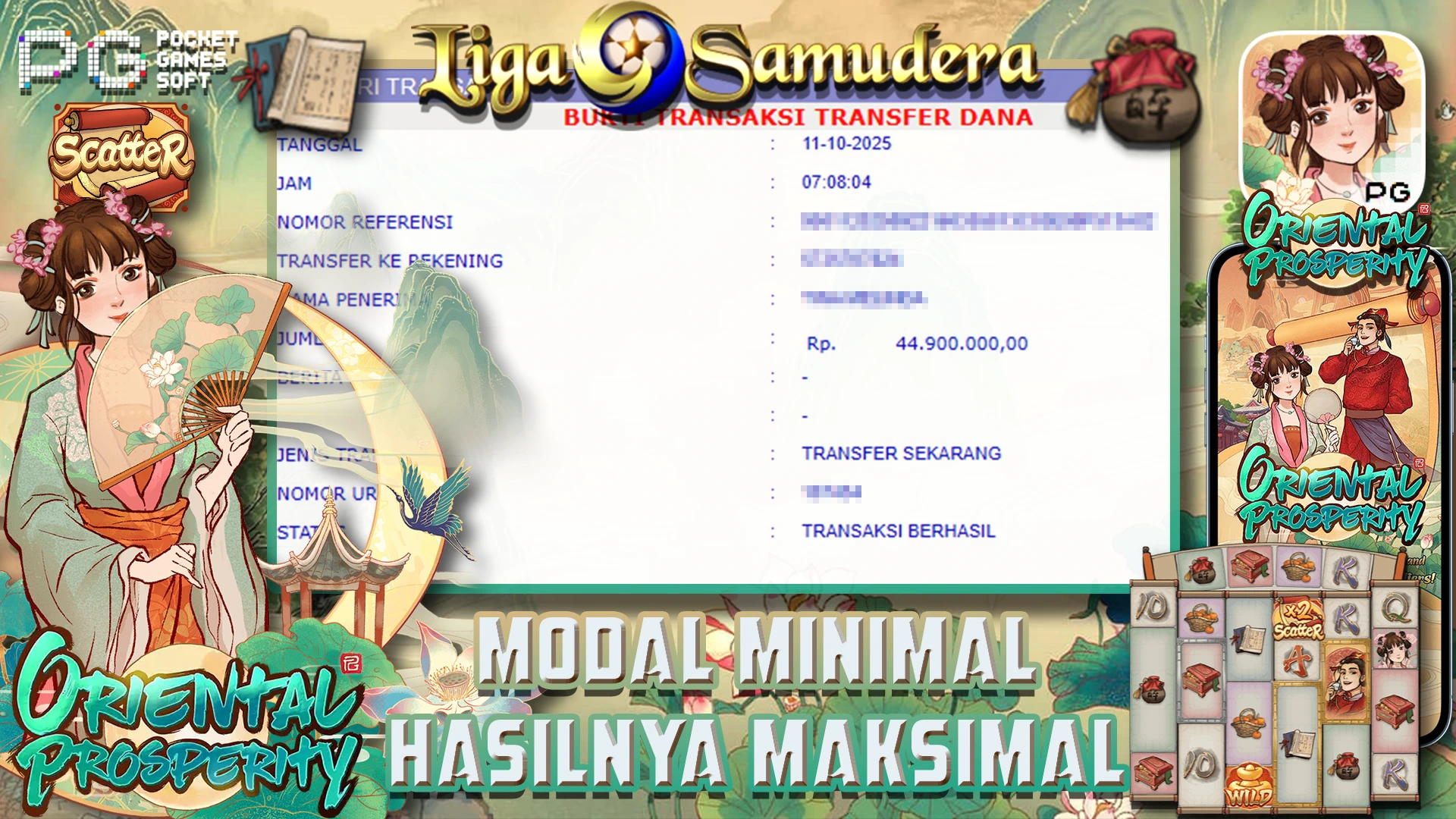 BUKTI KEMENANGAN BERMAIN PERMAINAN SLOT PG SOFT ” ORIENTAL PROSPERITY “