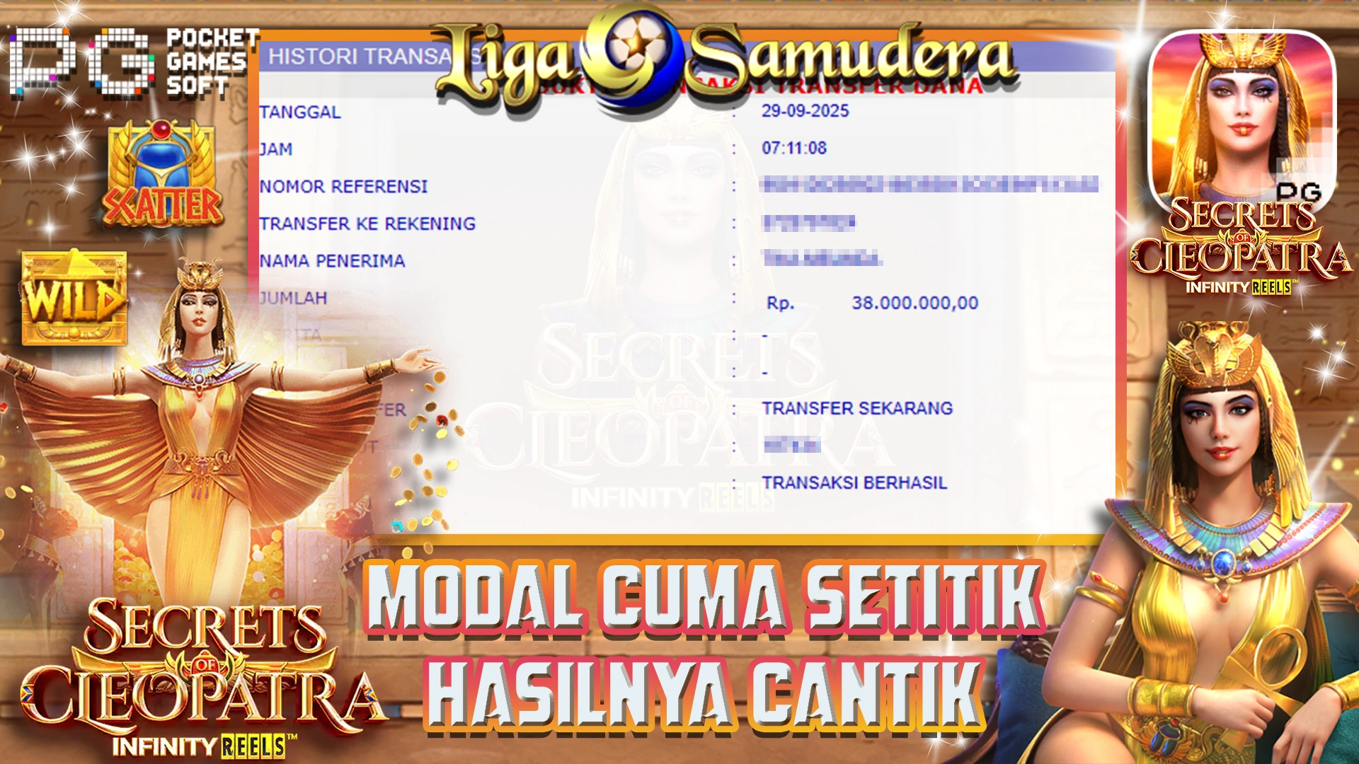 BUKTI KEMENANGAN BERMAIN PERMAINAN SLOT PG SOFT ” SECRETS CLEOPATRA “