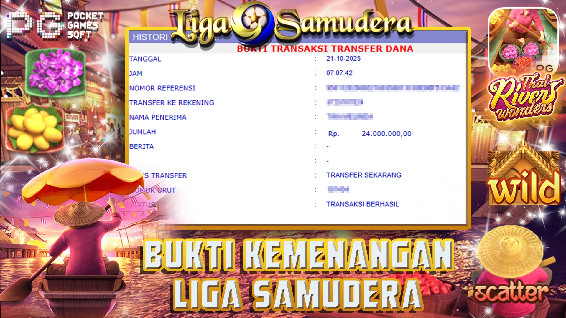 BUKTI KEMENANGAN BERMAIN PERMAINAN SLOT PG SOFT ” THAI RIVER WONDERS “