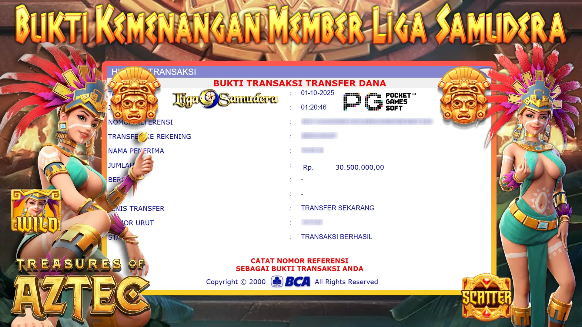 BUKTI KEMENANGAN BERMAIN PERMAINAN SLOT PG SOFT ” TREASURES OF AZTEC “