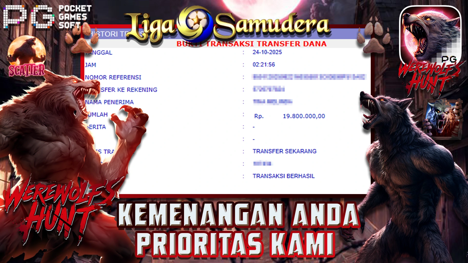 BUKTI KEMENANGAN BERMAIN PERMAINAN SLOT PG SOFT ” WEREWOLF HUNT “