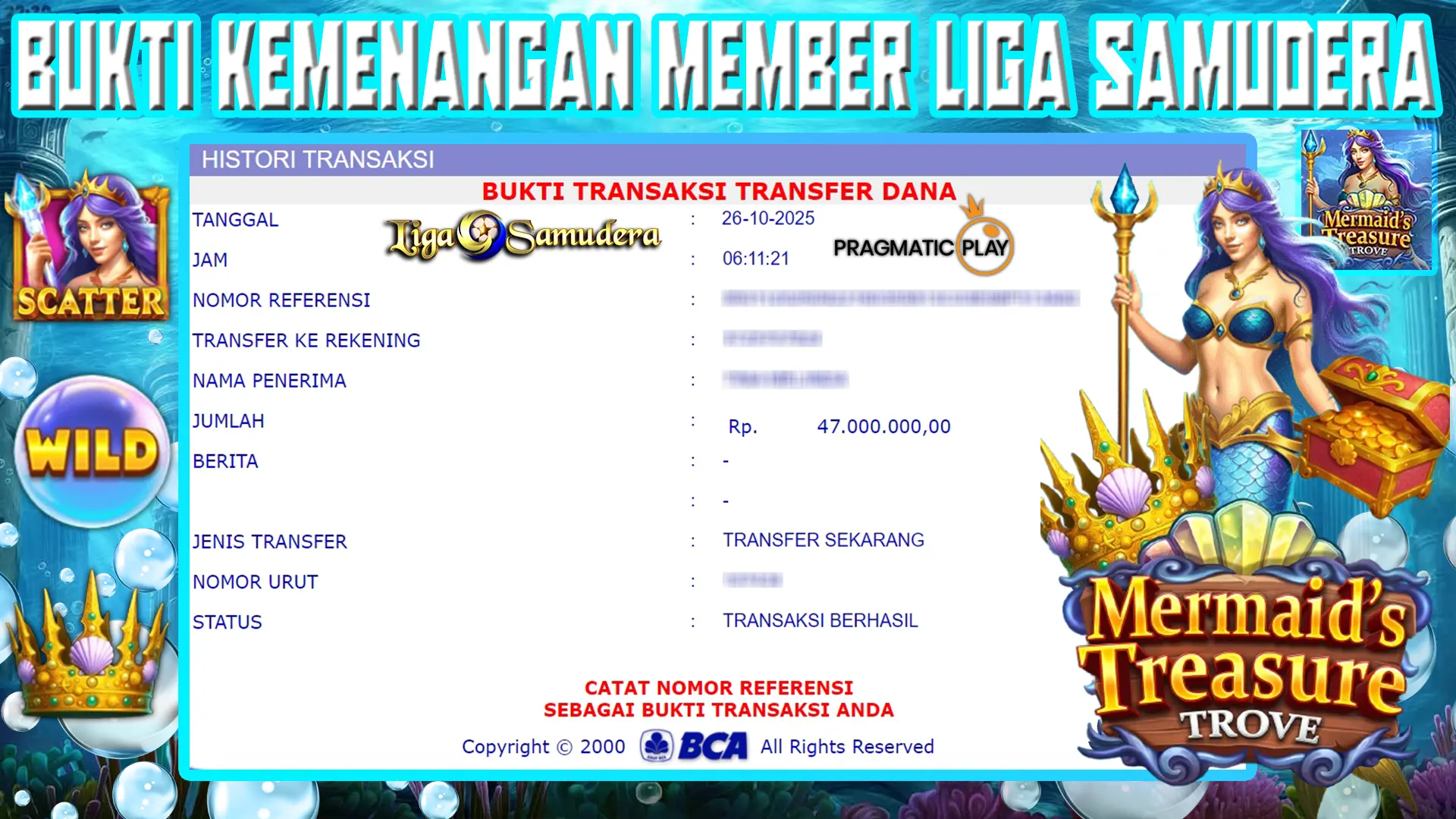 BUKTI KEMENANGAN BERMAIN PERMAINAN SLOT PRAGMATIC ” MERMAID’S TREASURE TROVE “