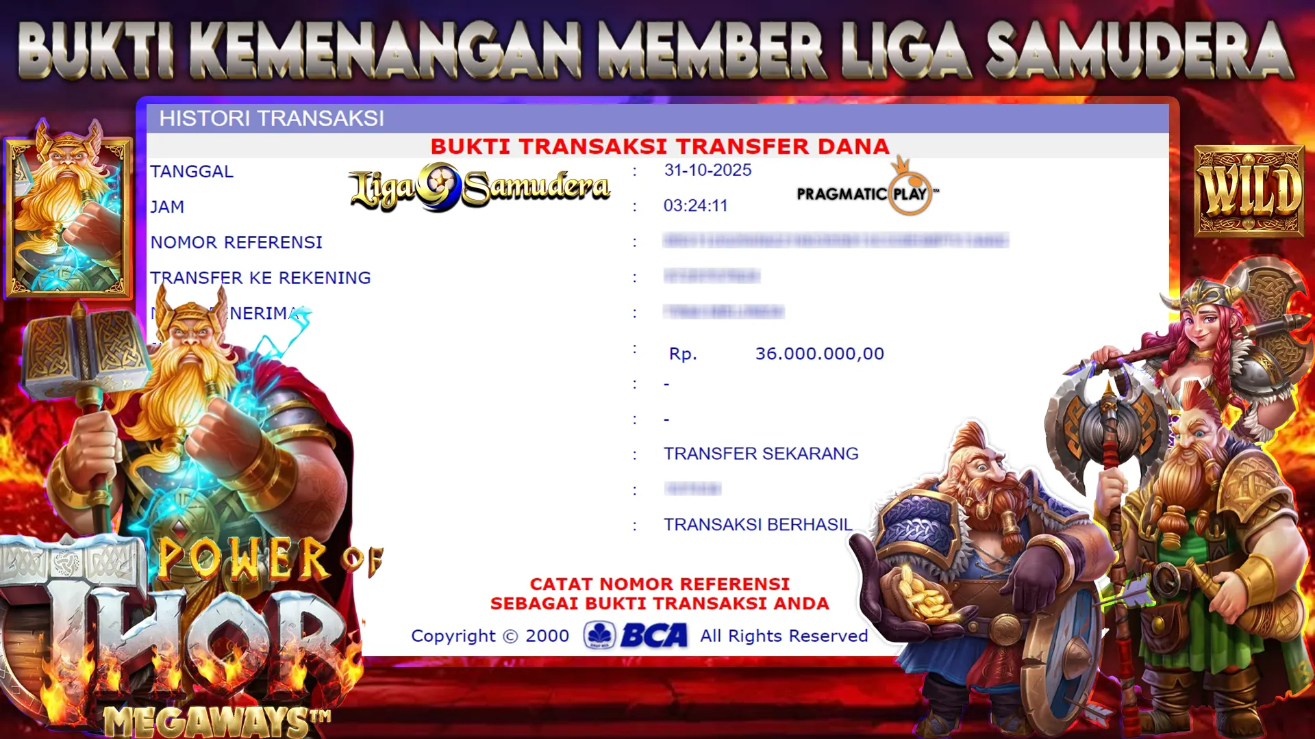 BUKTI KEMENANGAN BERMAIN PERMAINAN SLOT PRAGMATIC ” POWER OF THOR MEGAWAYS “