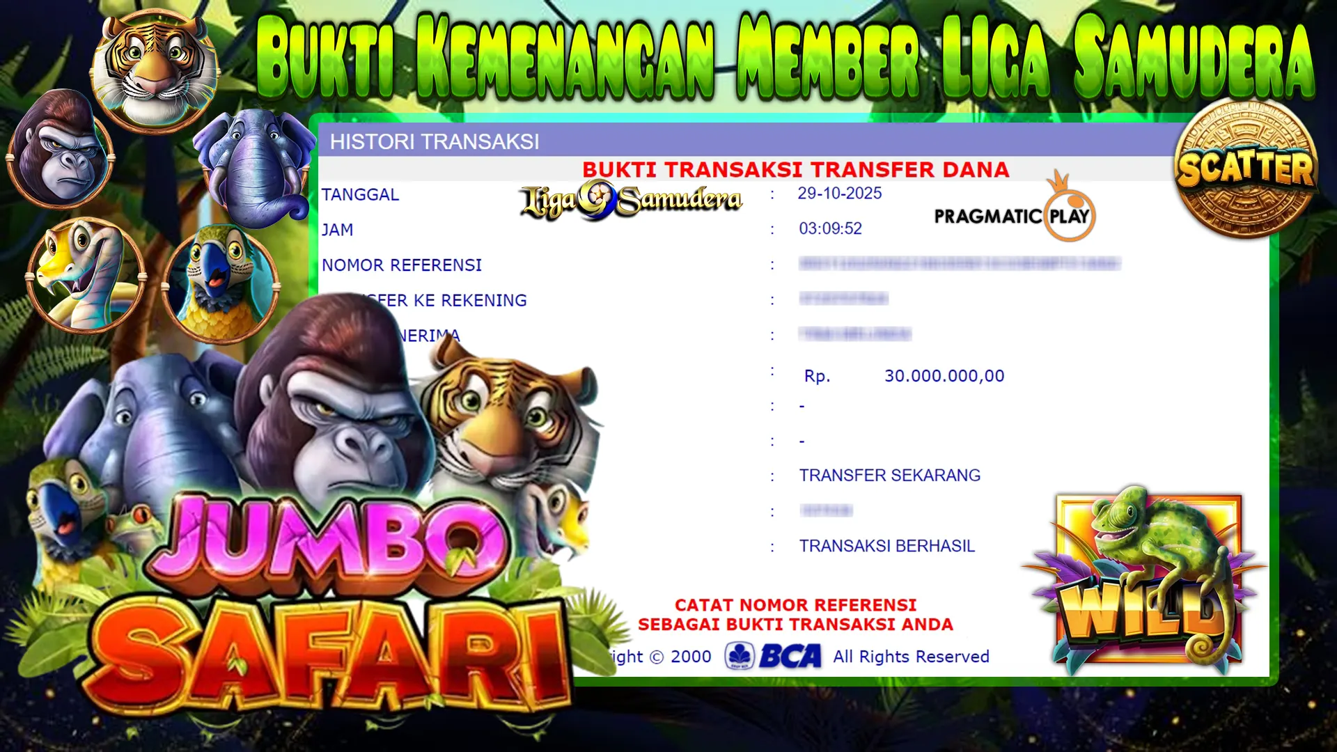 BUKTI KEMENANGAN BERMAIN PERMAINAN SLOT PRAGMATIG PLAY ” JUMBO SAFARI “