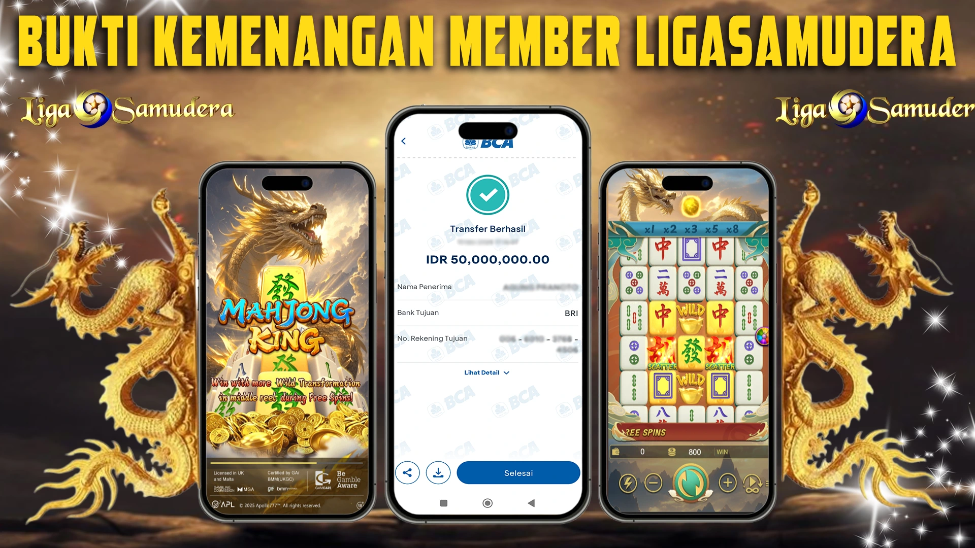 Bukti kemenangan member ligasamudera bermain game MAHJONG KING!!!