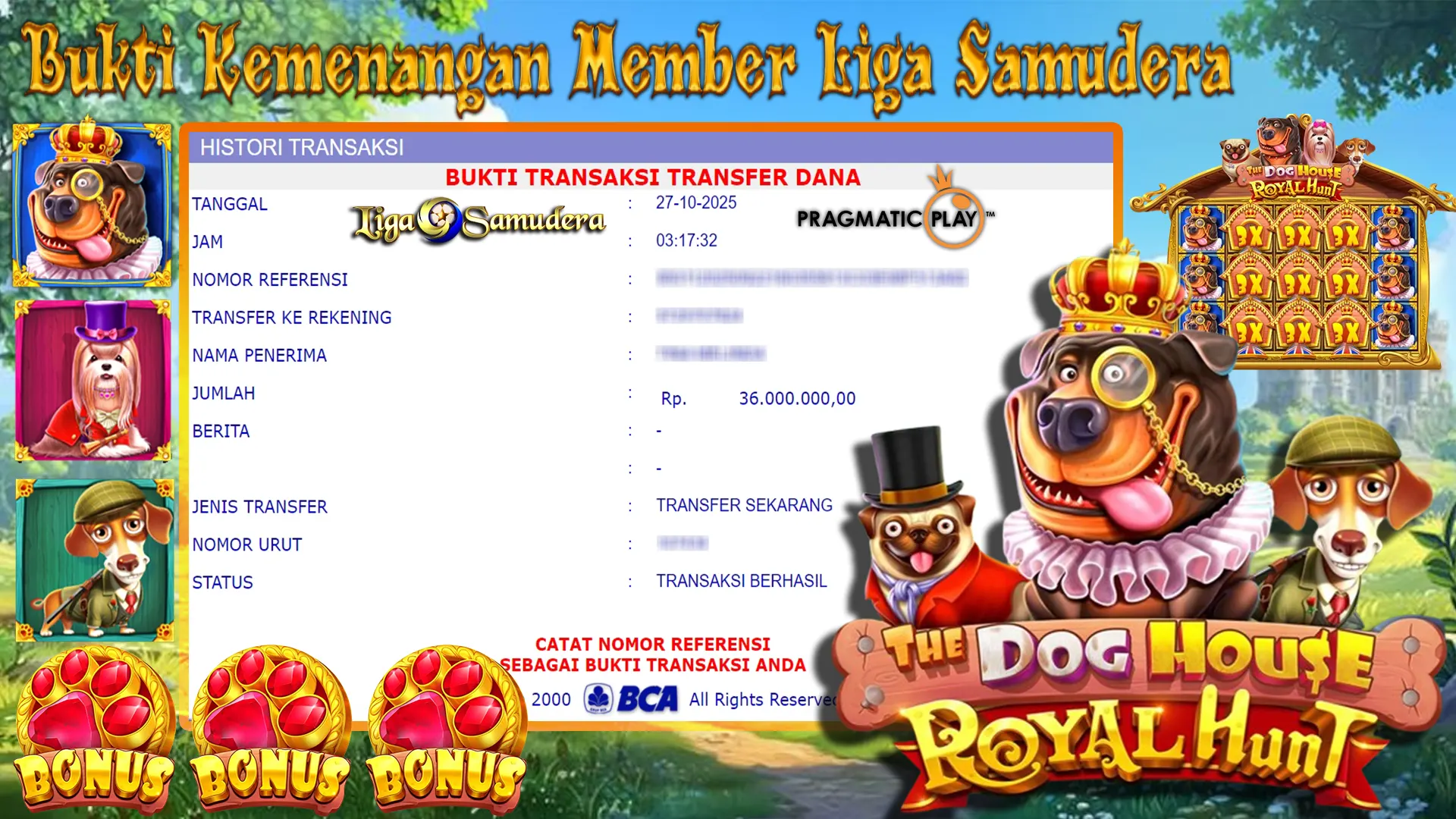 BUKTI KEMENENGAN BERMAIN PERMAINAN SLOT PRAGMATIC ” THE DOG HOUSE ROYAL HUNT “